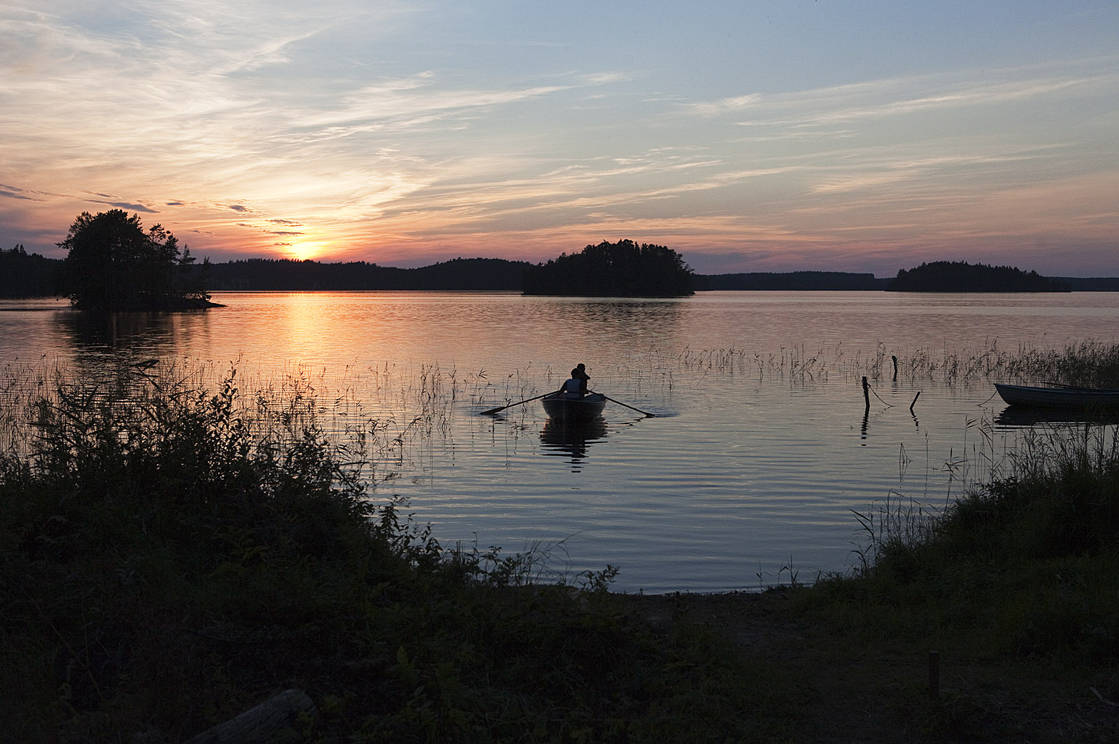 Vi sitter nere vid sjön och läser. Klockan är tio på kvällen och det är 22 grader varmt. Nästan osannolikt. Lommarna, de tres gäng, fiskar ute på sjön. Vi är bara fem mil från storstaden, men helt ensamma vid sjön. Också det osannolikt. Läser Noréns dagbok 2005 - 2012. Han skriver att "dagarna är som katedraler". Det kan man säga om hans bok också, i en Tranströmersk mening. Men han kanske blir arg om han läser att jag skriver så – han är bestämd i sin uppfattning om de människor han möter. Även om han en annan gång kan ha ändrat sig, eller kompletterat sitt omdöme. Det är också en sak jag gillar hos honom. Jag vet inte vad han tycker om Tranströmer. Ofta tycker jag lika, eller jag förstår i varje fall vad han menar, men ibland håller jag inte med. Förstår inte vad han har emot trion Jan Myrdal, Lars Gustafsson och PO Enqvist; det är han som buntar ihop dem. Alla fyra är ju i grunden lika kritiska till utvecklingen nationellt och internationell inom kultur och politik, om än i varierande grad och med litet olika inriktning på det man intresserar sig för. Norén får inget Nobelpris och erbjuds ingen plats i Akademien, tack och lov. Han är en för stor författare för det. Jag tar en bild av de två vasstråna, men det är en tid när man inte kan tala om vass, eftersom det innebär tystnad om så mycket grymhet, som Brecht skrev och Athena Farrokhzad påminde om oss i sitt Sommar. Ändå gör jag det. På trots. Vi lyssnade på Athenas program och sade till varandra att nu kommer DE att gå i taket. Mycket riktigt, och det hålet kommer att täppas till. I den propagandans järnkupol som DE innesluter oss i får det inte förekomma sådana röster. Där skall Obama och Carl Bildt få tala till punkt utan att bli ifrågasatta. Och underhållningen ska sådana som han som hade sommarprogrammet nägra dagar senare stå för. Det är så kul att lyssna till vuxna män som kliver ur segelbåten och simmar några meter under Öresundsbron. Det stör inte Carl Bildt. Kan man inte utvisa honom till USA? Är han överhuvud taget svensk medborgare? Han är mer USA än USA självt, en CIA-kille som står för det sämsta i det landet: imperialismen, antifolkligheten, högerextremismen, folkmorden, antikommunismen; krigshetsandet. Han har tagit värvning hos dem så varför ska han stanna här och dra in oss i krigen? Vi demonstrerar mot Israel, deras ockupation och ständiga mördande – men än har ingen enda av partiledarna ställt upp och talat på mötena. Varför är de så fega? Nu är klockan 22.30 och getingarna surrar fortfarande under bastutaket. Det är vindstilla på sjön. Nu kommer myggen så det är dags att gå in. (2014-07-24)