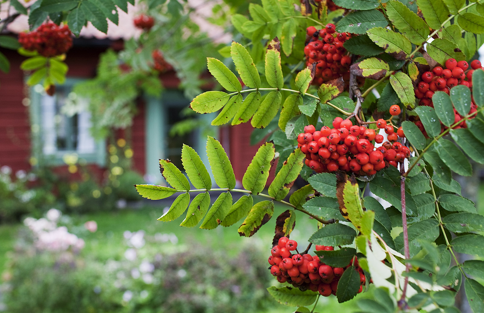 Regnet har lagt sig vid Stället med utsikten som man aldrig kan se sig mätt på och vinden mojnat och det ser ut att bli en fin dag i morgon. När jag betade mjärdarna kom en gluttsnäppa -- av alla fåglar! -- och landade på den lilla, lilla sandstranden intill. Mycket rönnbär i höst, hur man nu ska tolka det. Eldupphör -- men knappast fred -- i Gaza så kanske förebådar de många vackra bären något positivt? Man kan ju alltid hoppas!