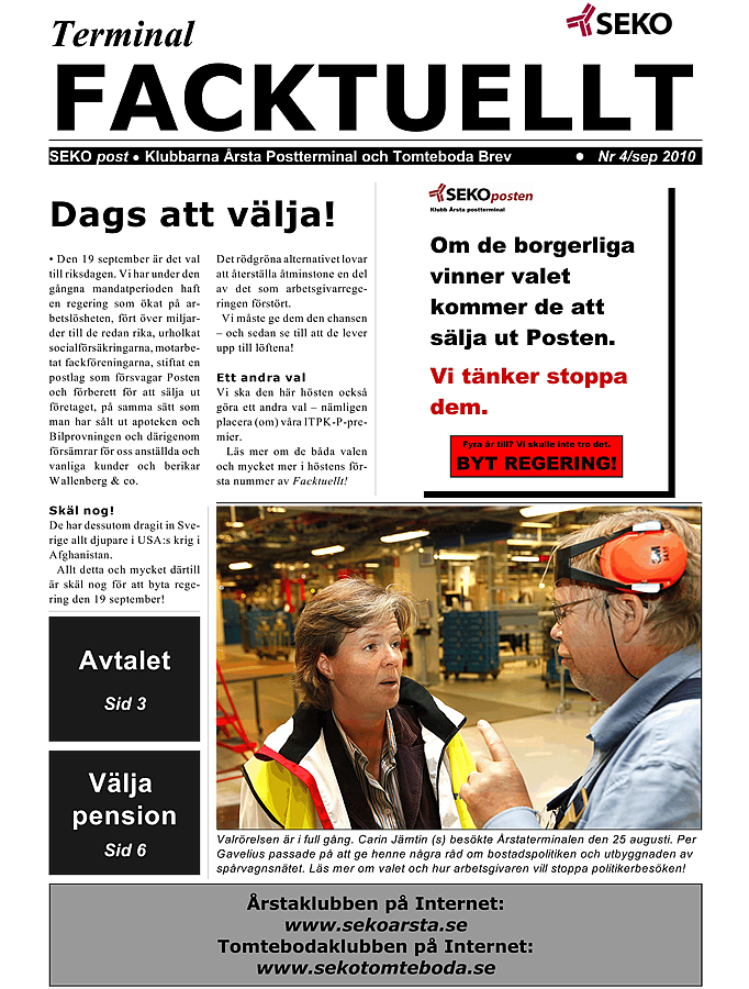 Valrörelsen pågår. Ikväll besök av Carin Jämtin på Årstaterminalen. Bilder och intervju från besöket på Årstaklubbens hemsida .