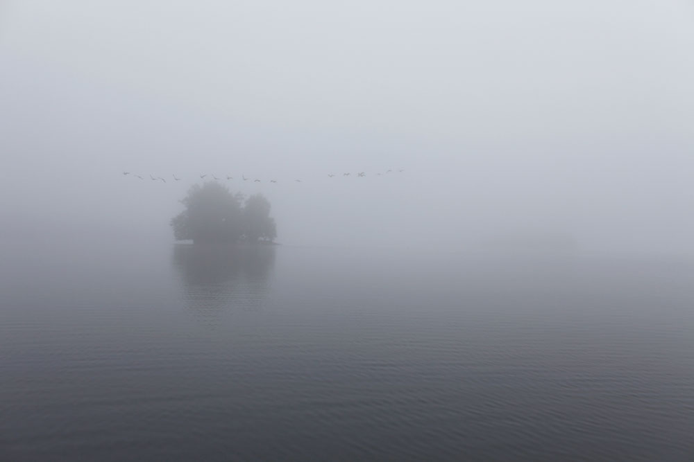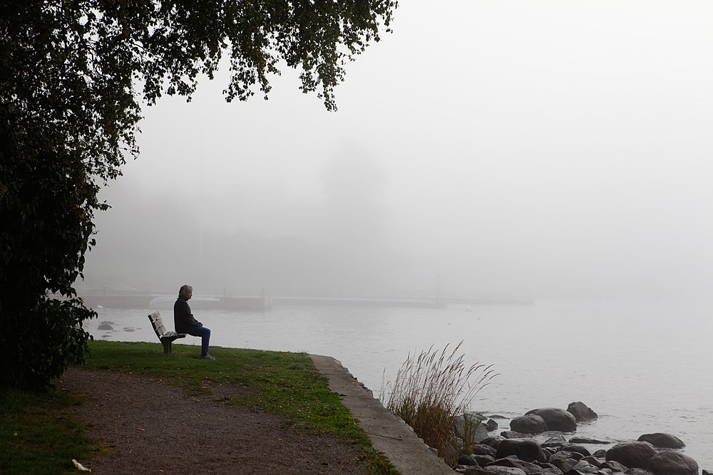 Bilder från morgonpromenaden: En dimmig morgon med vackert ljus i Stockholms skärgård.