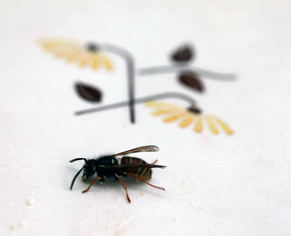 Många ur sommargenerationen måste ha kläckts de senaste dagarna. Idag höll de till i höstfibblorna och ängsvädden, de stunder som solen tittade fram. Klippte gräs, gräs, gräs... Beskar de gamla äppelträden, mycket frukt på dem, men rönnbärsmalen har angripit de flesta. Ing...en svamp än, bara några få kantarellknappar, inga fjällskivlingar. 20 grader i vattnet, badbart. Men i stugan var det rått när vi kom ut, tände i vedspisen för första gången i höst!