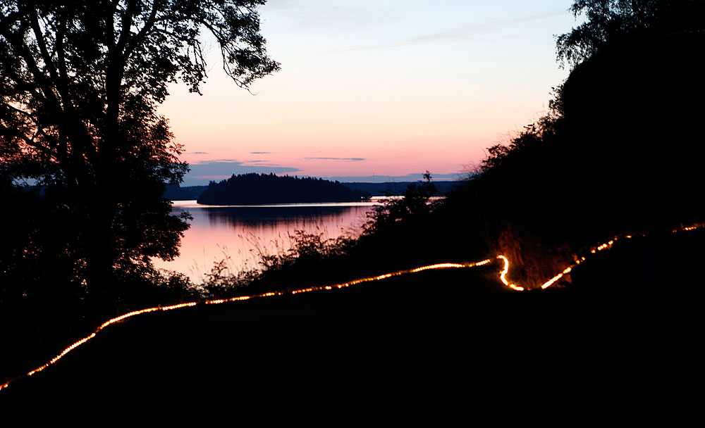 Ikväll förstärkt med ljusslinga, inför morgondagens festligheter. Åter i exil i Sörmland, den här gången för ett bröllop!