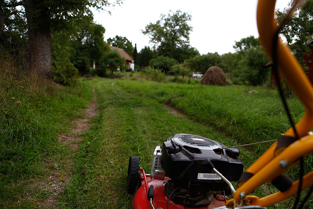 Semesterbilden: Torparutsikten. Åter i det småskaliga Roslagen efter ett besök i det mer godsägaranpassade Sörmland. Gräset hade vuxit som f-n i den tropiska värmen - och de första kantarellerna hade tittat fram.