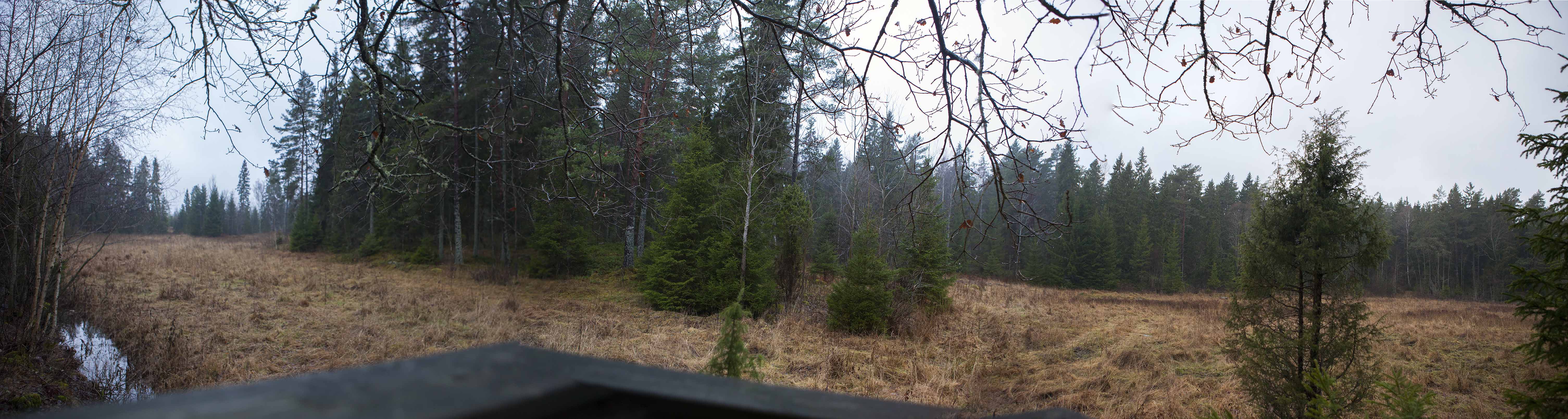 Efter så mycket stad är det dags att återvända till skogen och nere på Plattan står älgarna och väntar på oss i en skogsbacke, med gärdesgård runt om och för säkerhets skull också med livvakter från polisen, man vet aldrig vad stadsbuset kan hitta på! (2017-12-29)