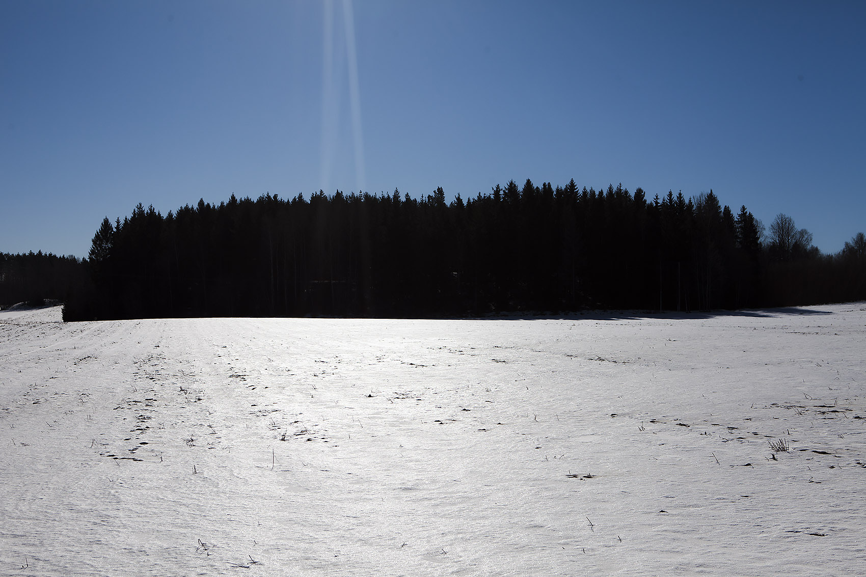 Två-tre decimeter snö, några minusgrader, soldis – vad mer kan man önska sig? Säkert många saker, men den här dagen var det njutning nog! De vanliga spåren, inga sensationer idag, jag väntar fortfarande på den här vinterns första lodjursspår. Nu när snötäcket har blivit litet tjockare ser man hermelinens/vesslans spår om man har tur, och det hade jag idag. Kan inte skilja på de två arternas spårtecken, har för liten erfarenhet av dem. Annars förvånas jag mest över att mården är så vanlig i den här skogen. Även idag spår efter fyra-fem olika individer. (2018-03-04)