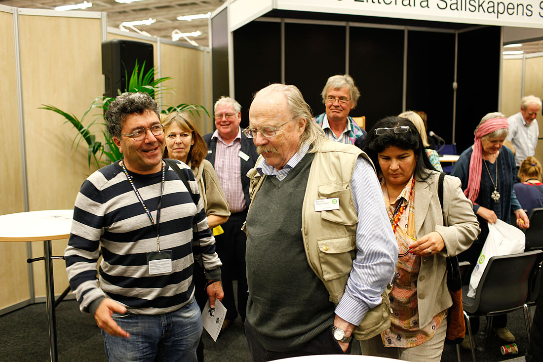 Det finns Norrtälje marknad ... och så finns bokmässan i Göteborg. Båda roliga att besöka och med stora likheter. På bokmässan kunde man till exempel fota genom ett isblock i Norrbottensmontern, men också lyssna till Jan Myrdal, lika intressant som vanligt. För dagen utstyrd som en riktig landsortsraggare! Om knappt två veckor är det dags för Norrtälje - vi får se vad som dyker upp där! Nu är det spännande Göteborgsbesöket (med en avstickare till Skärhamn) slut, om några minuter avgår tåget mot Stockholm!
