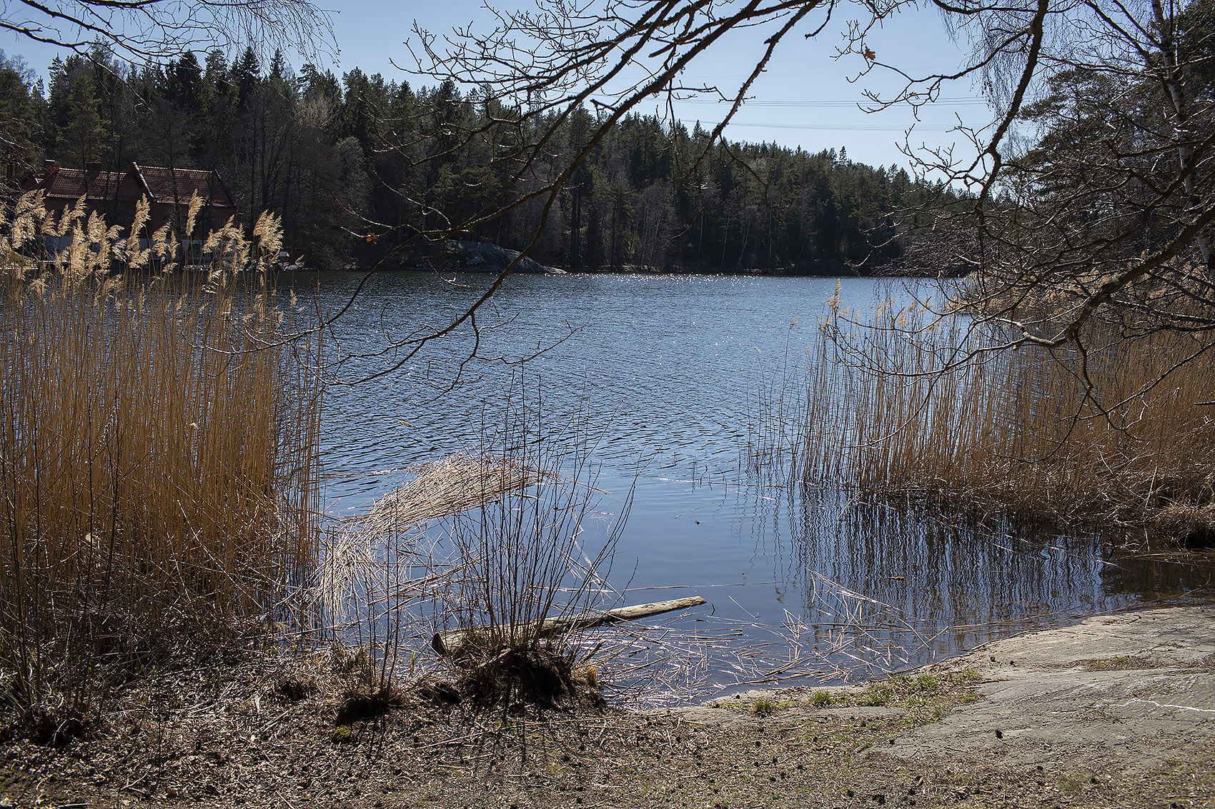 Långfredag vid Stället med utsikten som man aldrig kan se sig mätt på. När vi var här på påsken ifjol låg isen stark på sjön och flera av barnen åkte spark för första gången i sina liv. I år är all snö borta, sjön går öppen sedan några veckor tillbaka -- och det är 20 grader varmt. Visserligen är påsken drygt två veckor senare, men ändå. Det är det här som är tjusningen med att leva i ett land med den här typen av klimat; man vet aldrig riktigt säkert.