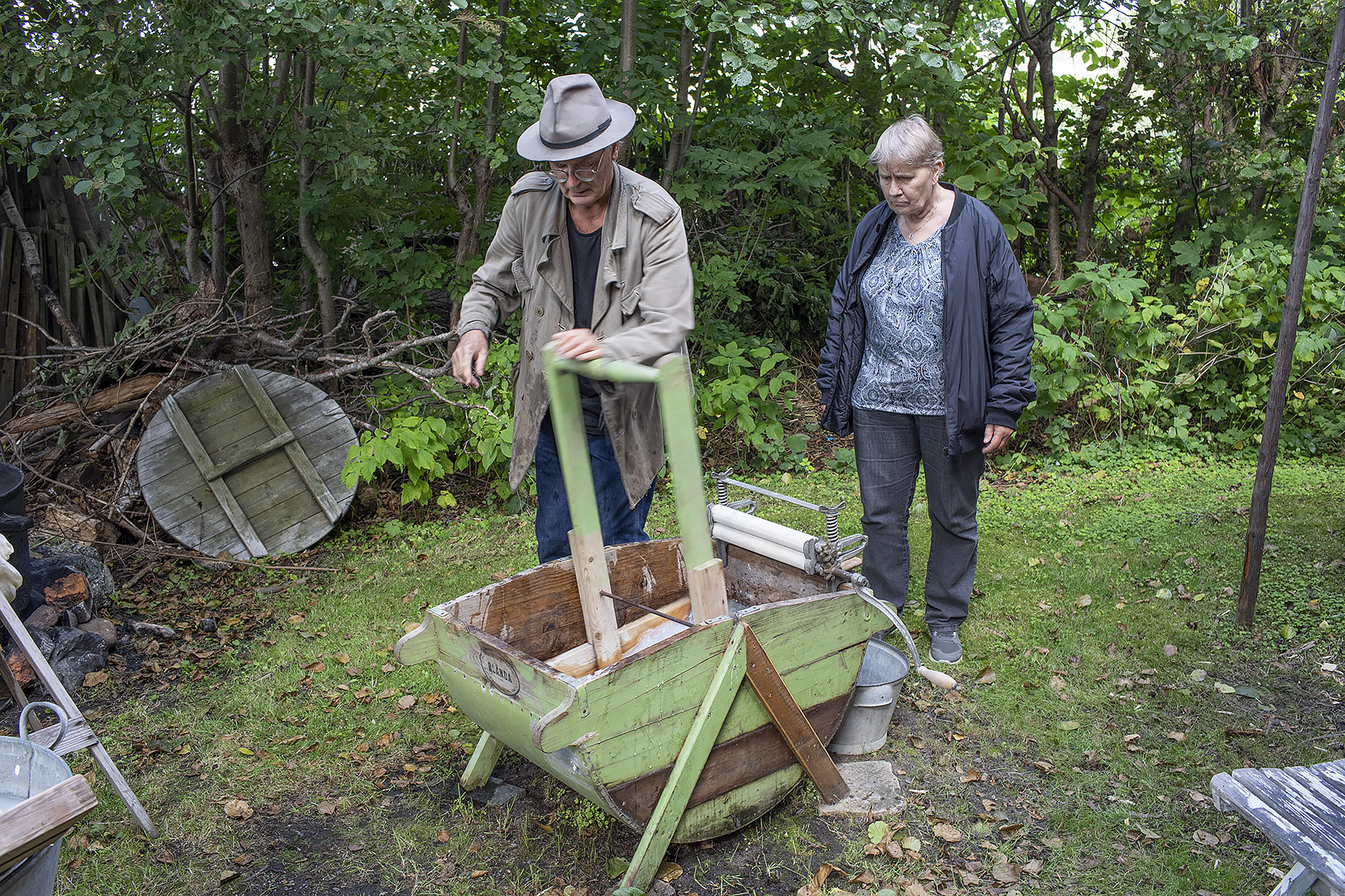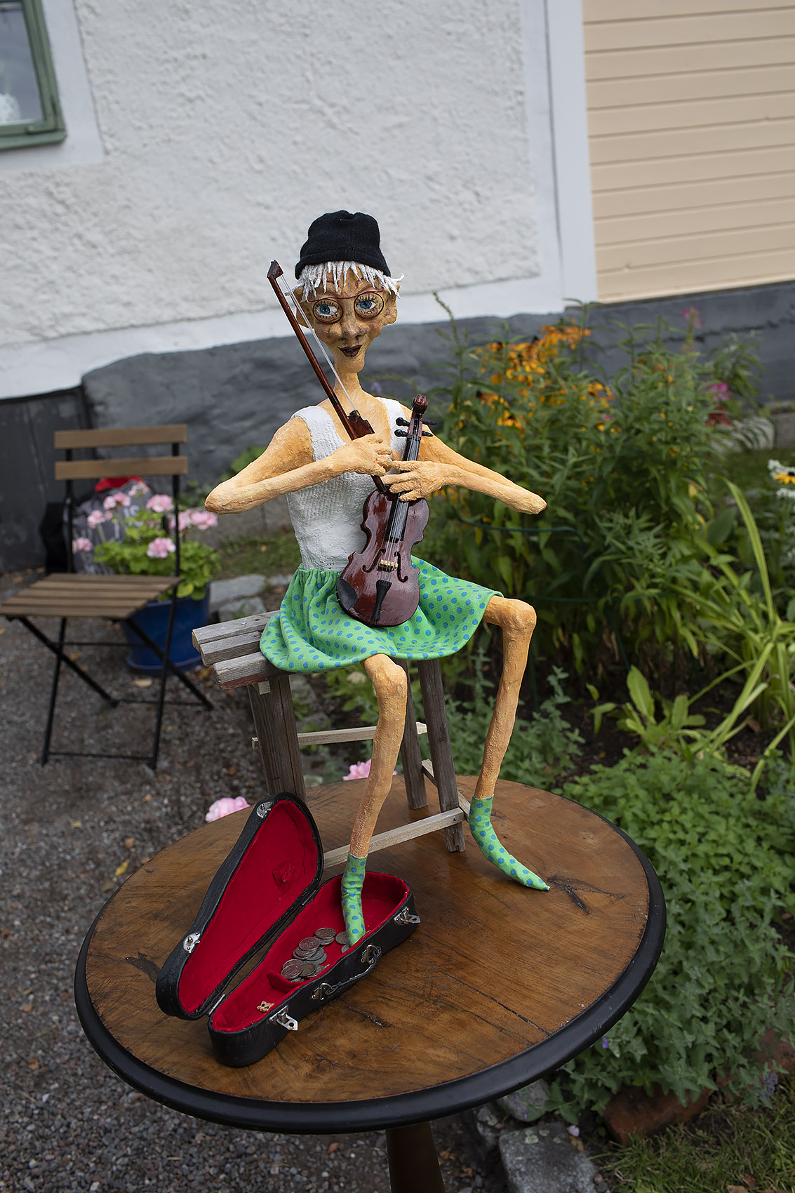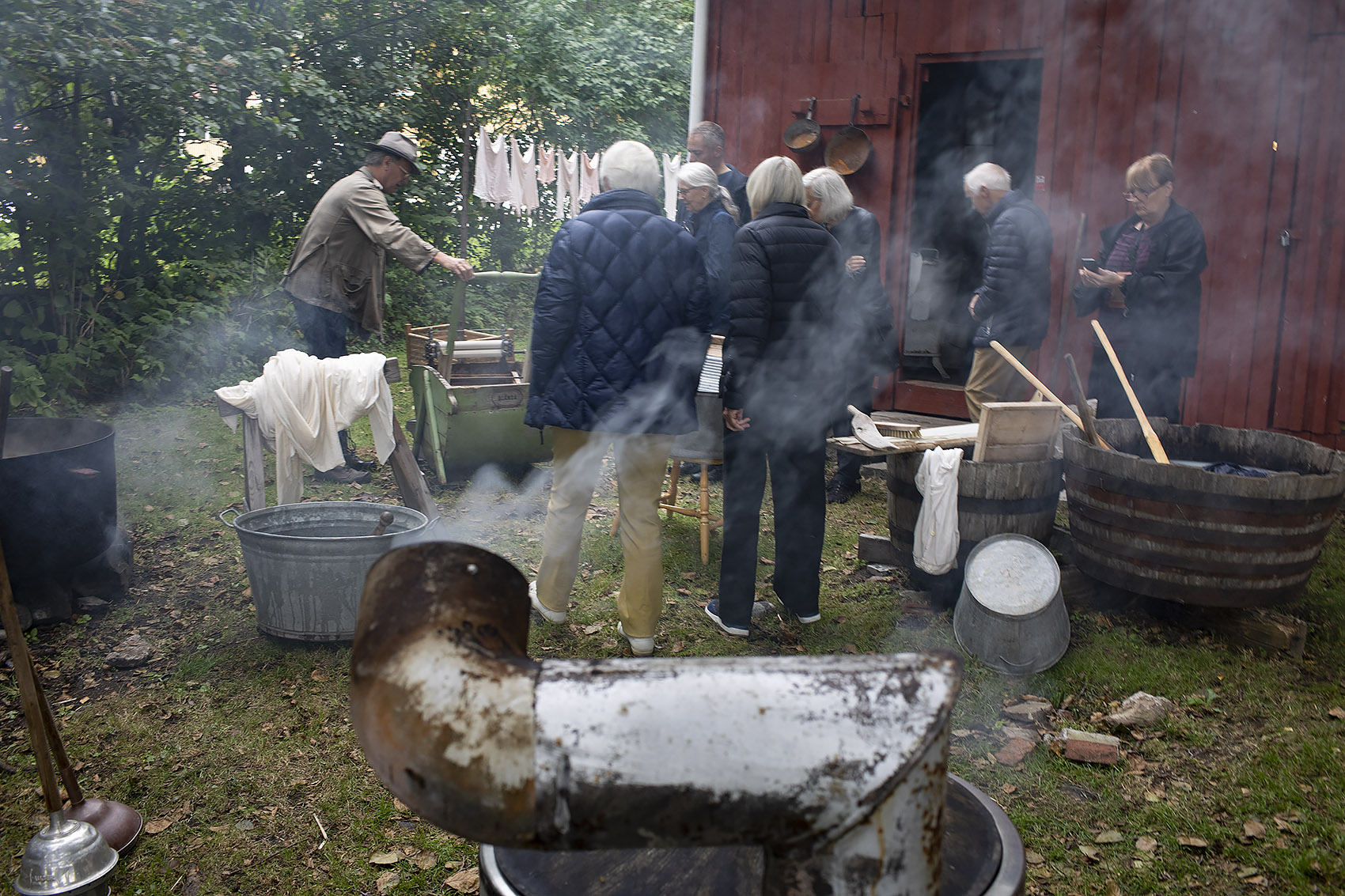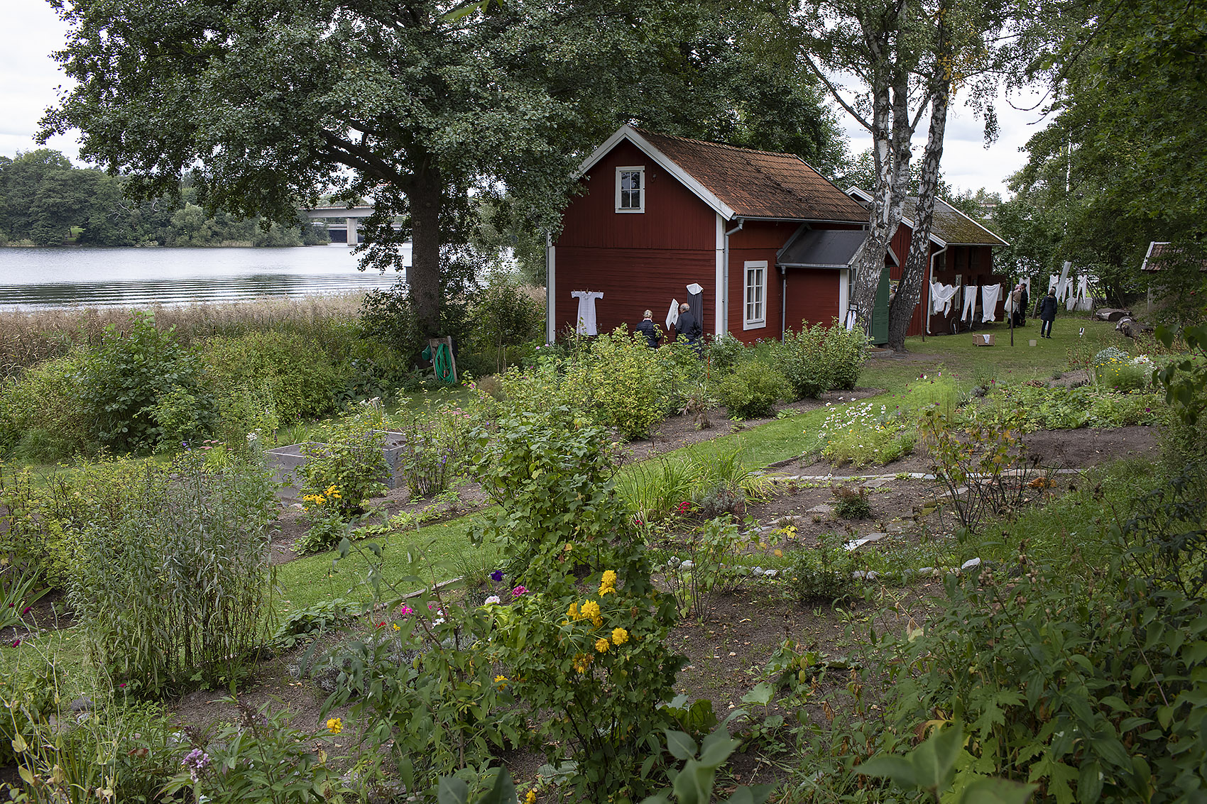Men gräshopporna gör ingen skada, inte i vår del av världen, och inte heller våra grannar bålgetingarna. Men ifjol byggde de i timmerväggen, vi hörde dem inifrån rummet hur de jobbade och när hösten kom och boet redan övergivits blev det fuktfläckar på den tunna innerväggen. När nu masoniten revs blottades det magnifika boet. I år har de byggt längre bort från huset och vi har knappt sett till dem förrän nu, i de mörka kvällarna samlas de kring ytterlamporna – till skillnad från vanliga getingar är de tydligen aktiva även på natten – och på dagarna sitter de i trädgården och äter av äpplena. (2019-08-31)