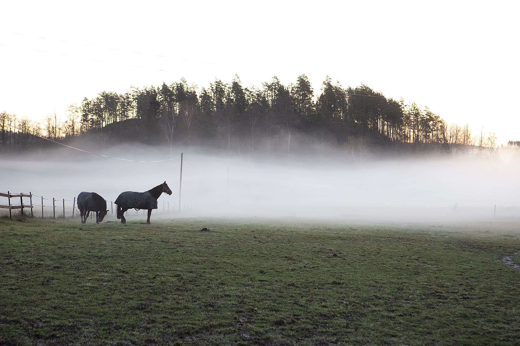 Hur det nu än är med älgjakten, så blir det litet avslaget när man bara får skjuta kalv. Så är det i år, vi har varit med om det förr, det kan bero på ändrade krav för att få ett vuxet djur på tilldelningen, men det kan också, som i år, bero på att vi är förlorare i det ständiga kriget om mark. Spänningen blir litet mindre, också därför att många jaktlag numera hoppar över de första dagarna och väntar till helgen, kanske är det dags att göra som i Finland där man tydligen inleder älgjakten på en lördag, dessutom används numera ljuddämpare på bössorna så även om det skjuts hos grannarna så hör man det inte, bara bruset från dem i jaktradion; men njutningen av att sitta en dag i skogen är lika stor för det. Någon skjutbar älg såg vi inte, men ett stjärtmespar gjorde dagen, som man säger numera, när de for omkring i småbjörkarna framför tornet. Fågelsträcket österifrån verkade ligga nere helt, inga siskor eller korsnäbbar eller kråkor eller gäss kom in från havet; bara korparna som underhöll med sin tokiga läten. Den första bilden härintill togs 2015, det var en kall morgon med frost i gräset och den svarta älgen alldeles intill tornet syntes tydligt, det var tur att jag inte var lika triggerhappy som han där nere i Skåne som sköt kor och trodde att det var vildsvin, det kan lätt bli så när man sitter i mörkret och är litet sömnig och alla katter blir grå. Den andra bilden är från i år, nu syns knappt älgen längre, den skyms av alla granplantor och björkskott som har vuxit till sig på det nu drygt tio år gamla hygget. Den tredje bilden är från 2012. Då speglade sig tornet och den ensamma kvarlämnade björken i det till brädden vattenfyllda diket – i år var där snustorrt. Det blev ingen älg idag, vilket ska noteras i min mer än 50-åriga dagbok äver älgjakten i Roslagsbyn, men ett foto blev det, som tillsammans med de andra bilderna blir till en dokumentation över en plats i rågången mellan två byar där ett stort hygge togs upp och där det stod ett älgtorn som speglade sig i diket och jägarna som satt där under några år hade uppsikt ända bort till grannarnas skog. Sedan slöt sig skogen återigen och jägaren fick flytta på sig och minnet av "Grytahygget V" bleknar, det lever kvar en tid som en litet ljusare ton i det gröna på kartan, och kanske som en notering i en skogsbruksplan, och några yngre människor minns fortfarande att det stod ett älgtorn här och att någon för länge sedan ska ha skjutit en älg där en novembermorgon.