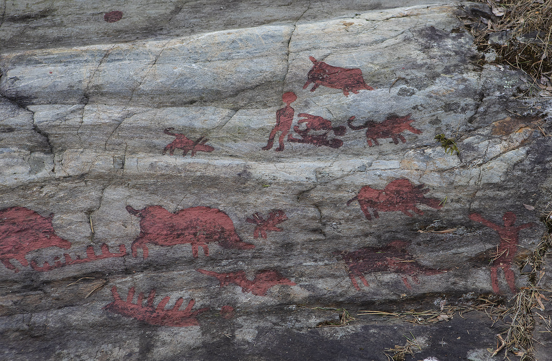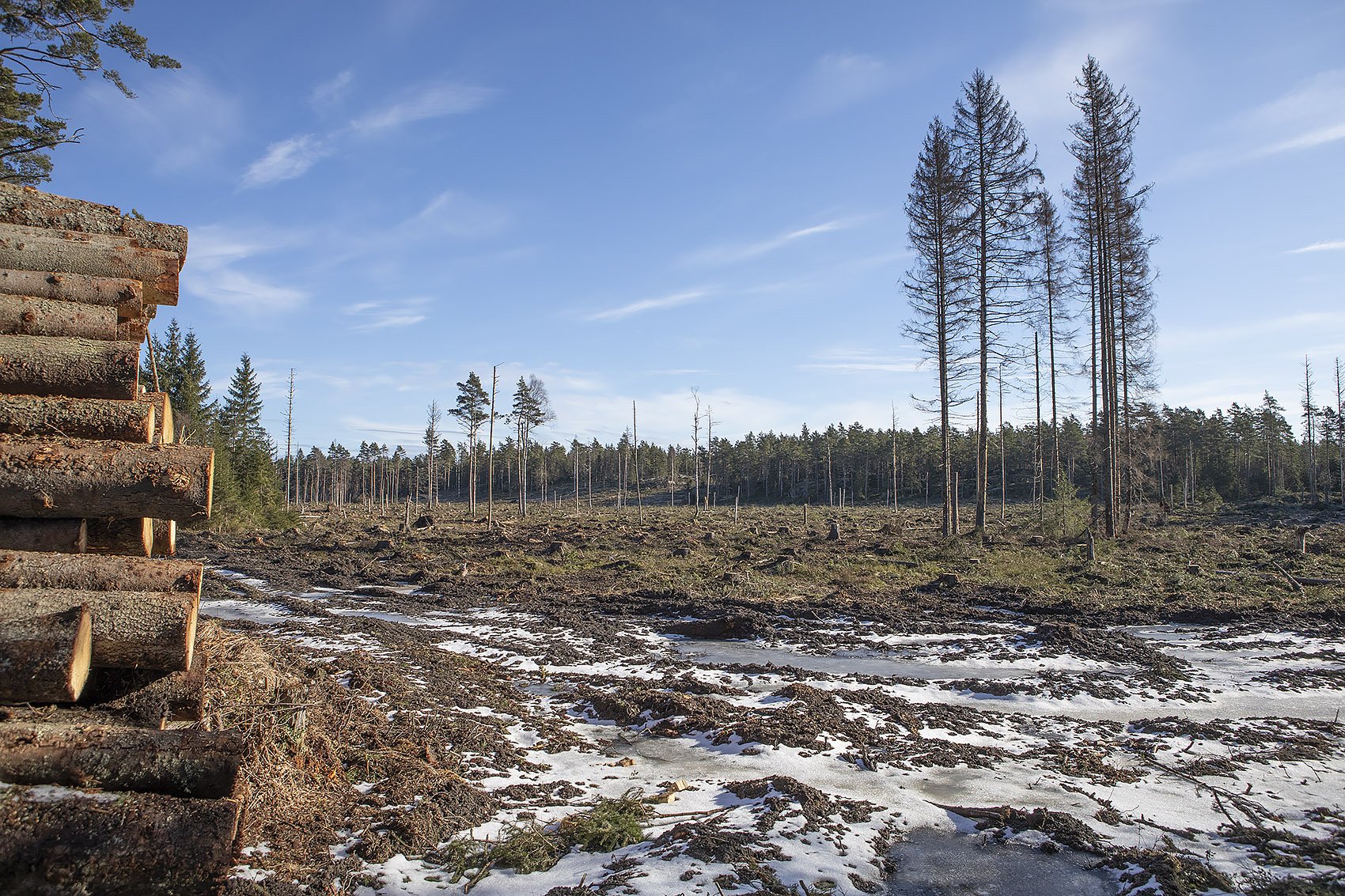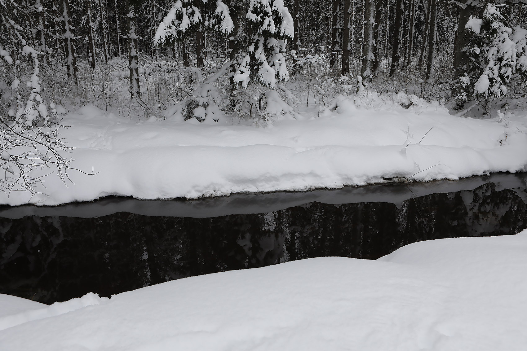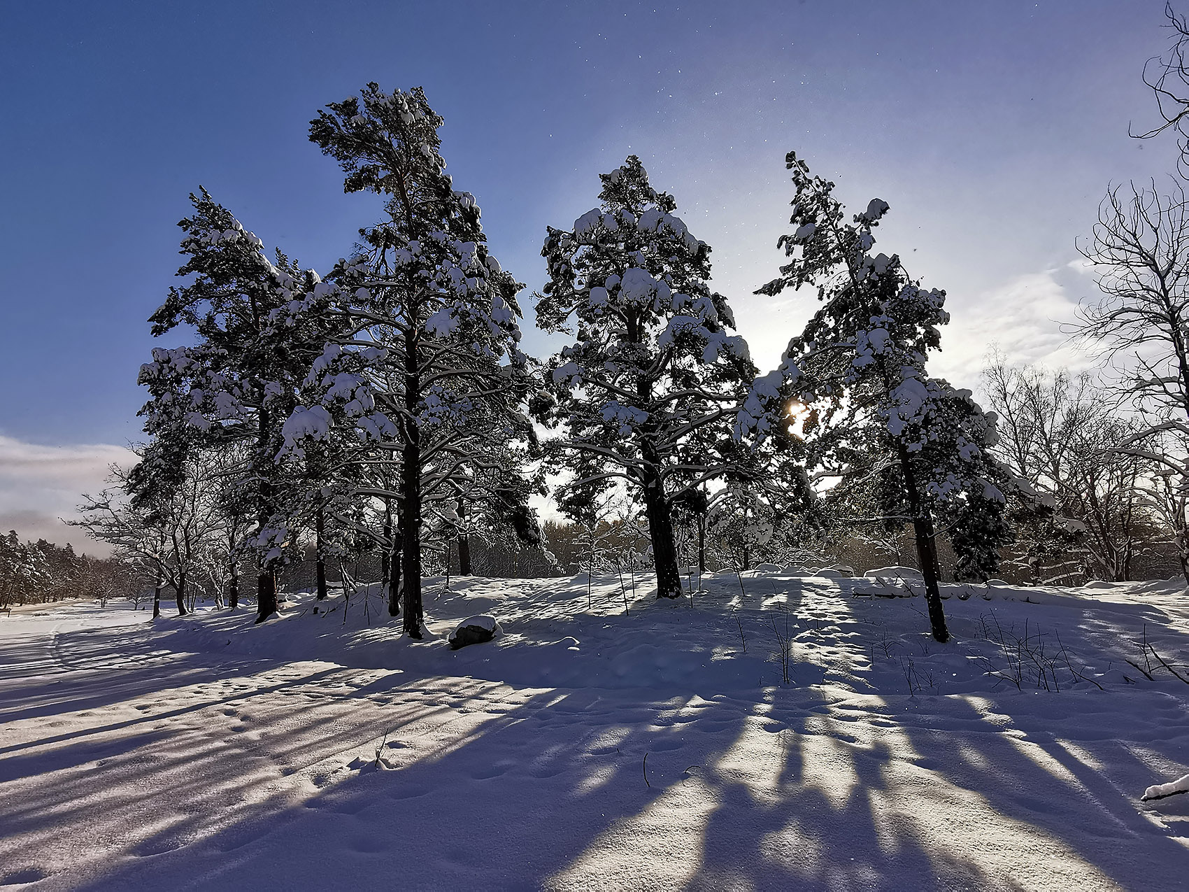 Solen sken över snön, och mot oss, hela dagen. Uppe på skogen hade grisarna korsat vägen, på flera ställen. Och en låg död i ett dike, troligen ihjälkörd, en smitningsolycka. Två älgar håller till längst upp mot grannbyns marker och en nere vid landsvägen. Rådjur och åter rådjur, de är där det bjuds mat, alldeles nertrampat kring saltstenen och utfordringen inne på Sigfrids. Mård på tre ställen, de håller alltså ställningarna, den som förr i tiden var så ovanlig i de här skogarna. Vi skrämde upp en sork, eller näbbmus? på vägen. Jäklar vad bråttom den fick att krypa ner i snön igen! En talltita varnade uppe vid Grytahygget, en korp hördes, talgoxe, blåmes och nötväcka; annars tyst. Så tyst som det bara kan bli en vindstilla dag i en snötäckt skog, långt borta från staden och de stora vägarna. (2021-02-15)