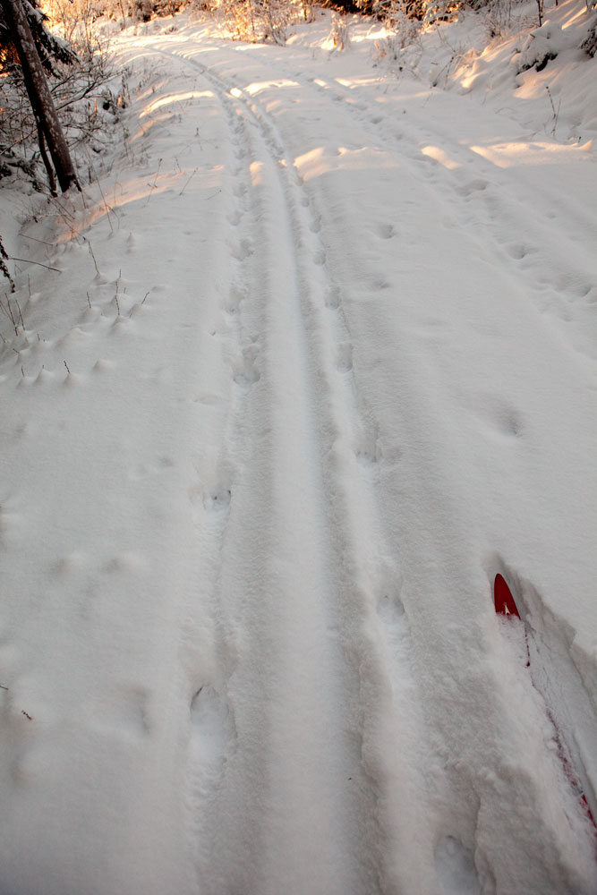 Den 29 november! Ett par dm snö, utmärkt skidföre på skogsbilvägen, nästan tio grader kallt -- och det hade varit nere i -17,2 grader en natt!