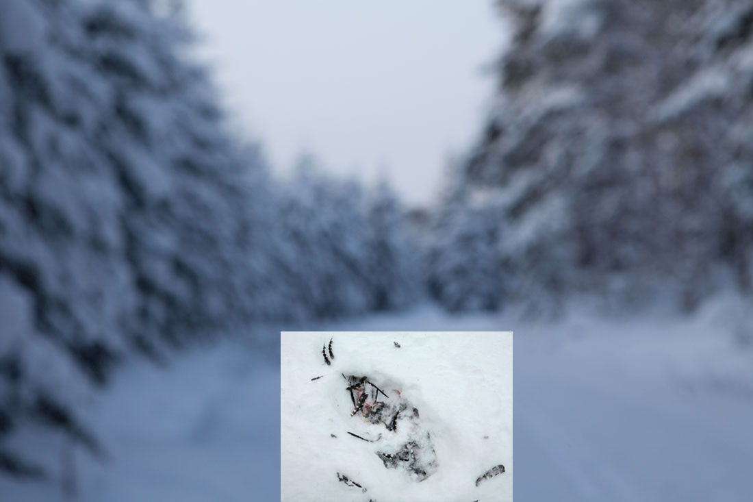 En bild för finsmakare: Två vargar har gått längs skogsbilvägen ner till torpet.