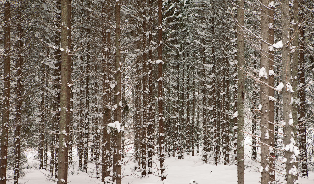 Bilden är tagen i en granplantering nära Roslagstorpet. Det finns en skönhet även i dessa granåkrar, trots deras räta linjer och enformighet: de är ofta grafiskt vackra och, som här, med en fin röd ton i stammarna; förstärkt i fotot. Om inte annat kan man följa min uppmaning till sambon, när hon förtvivlar över alla gamla åkerlappar som det stora godset planterar igen: Tänk litet på bruttonationalprodukten också!