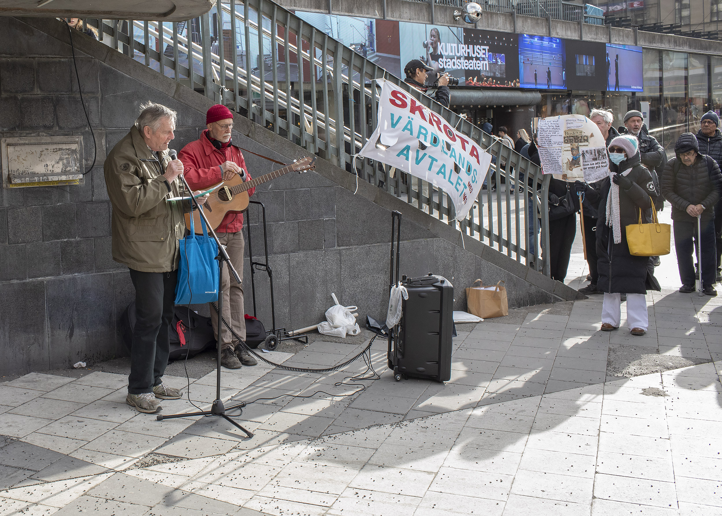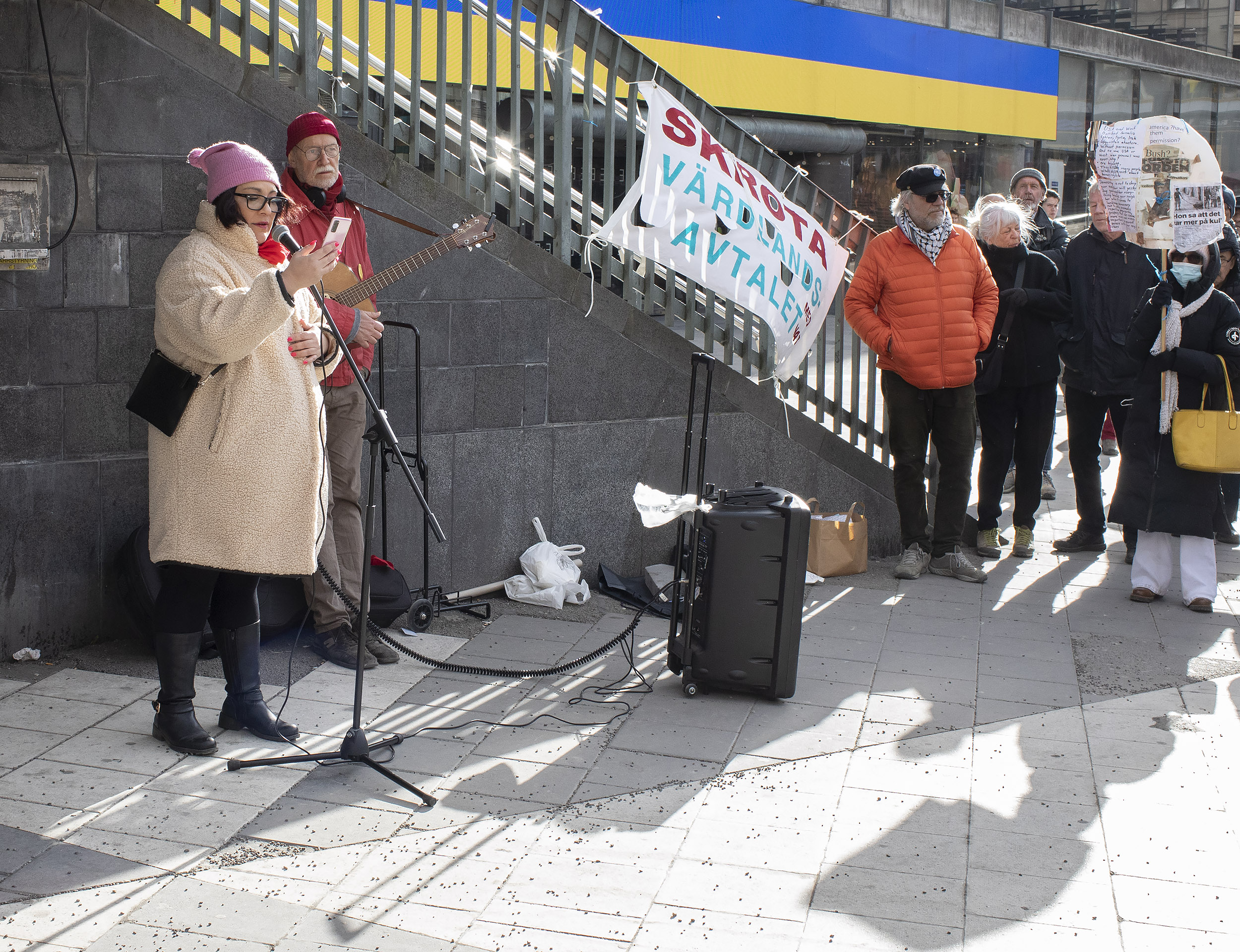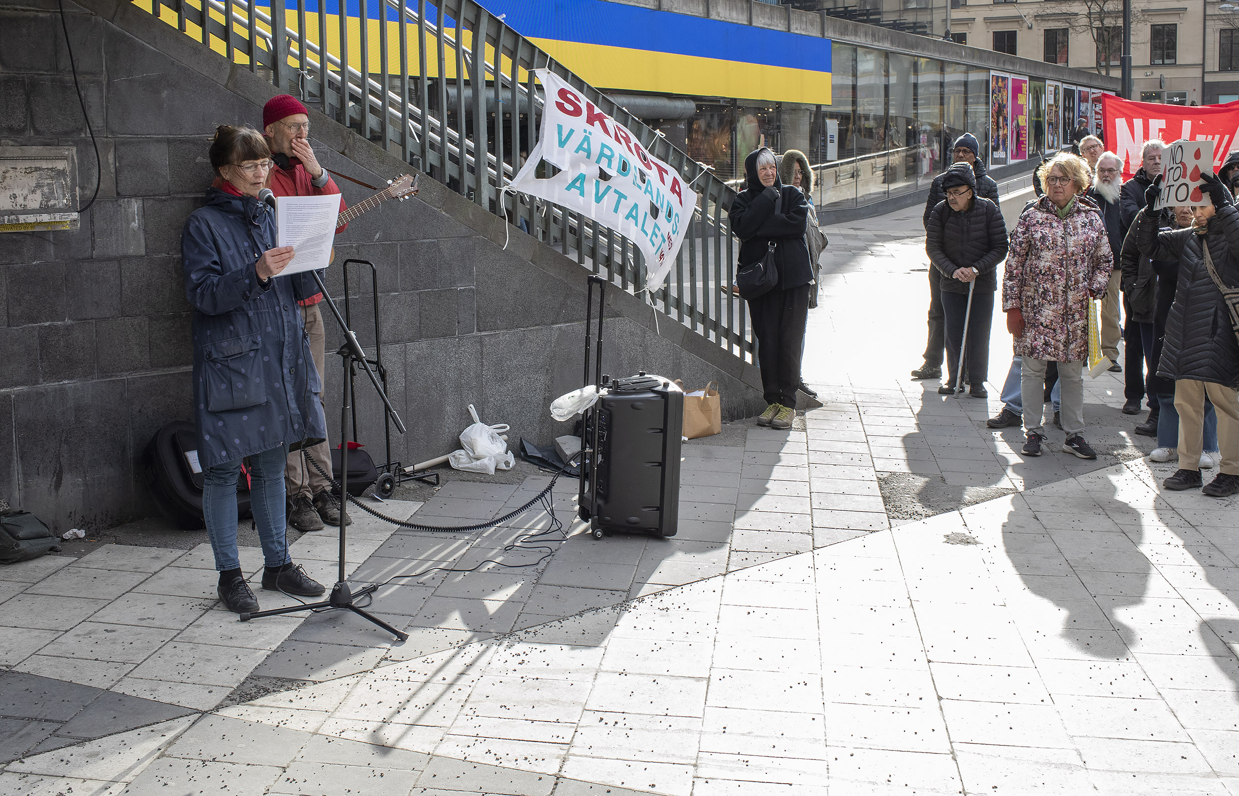 När detta är sagt, det första och i det här läget det viktigaste, måste det också sägas några ord om dem som mest högljutt säger sig stödja Ukraina, och deras politik. Jag tänker på våra svenska politiker, hycklarna, troligen de sämsta sedan den allmänna rösträtten genomfördes; och så svansen inom media. De fördömer nu alla Ryssland för vad de gör mot Ukraina – bra! Men själva då? De har dragit in Sverige i krig med Afghanistan, i 20 år var vi där, och det fortsätter, med Syrien, med Iran, med med Libyen, med Nordkorea, med Kuba, med Venezuela, ja t.o.m. i viss utsträckning med Kina. Och Ryssland och Vitryssland förstås, även före det nu pågående kriget. Vilka krig?, frågar sig många som inte har förstått innebörden i, och effekterna av, de blodiga sanktioner av olika slag som vi deltar i mot dessa länder; kanske känner man inte ens till att de existerar. Eller också har man bara, med medias hjälp, förträngt dem. Alltså, i konsekvensens namn: inga svenska idrottare till friidrotts-VM, inga svenska artister till Eurovisionschlagern. Och spärra alla våra ledande svenska politikers konton! Eller hur, om vi ska vara konsekventa. Förresten är Eutovisionsschlagern trots sin intighet intressant. Man slänger ut Ryssland och Vitryssland med motiveringen att deras agerande strider mot tävlingens “värdegrund”. Så bra – men Israel får tydligen stanna kvar. Deras mångåriga krig och ockupationer, stölder och ständiga mördande stämmer alltså med Eurovisionsschlagerns värdegrund? Det starka folkliga kravet på fred i Ukraina, att det ryska angreppskriget ska upphöra, vrids nu mot rena greuelpropagandan där enskilda ryssar som inte har eller haft något att säga till om kriget fördöms och förföljs. Ja, t.o.m. döda ryssar sätts upp på index. I Milano ställer man in ett seminarium om Dostojevskij, därför att han var ryss. Och i Sverige ska nu alla kulturella och vetenskaliga samarbeten med Ryssland stängas ner. Dramaten sätter inom kort upp en pjäs av Gorkij i regi av en ungrare. Har de då frågat Ann Linde, Peter Hultqvist och Patrik Oksanen om lov; Gorkij var ju ryss!? (slutade vi att lyssna på USA-artister som Bob Dylan och Frank Sinatra när deras ledare förde krig i Vietnam och nu för krig i Syrien? Nej, det gjorde och gör vi inte!) De som kör den här propagandan förstår inte att detta avhumaniserande av ett helt folk är upptakten till ett större krig; det imperialistiska omfördelningskrig som står för dörren. Det har skett en maktförskjutning i världsekonomin och därför är det som när kontinentalplattorna rör sig och skaver mot varandra: det kommer en jordbävning, men vi vet inte säkert när och var. Det som nu sker i Ukraina är ett förskalv, liksom krigen i Mellanöstern. Det ryska kriget har redan tvingat över en miljon ukrainare på flykt. USA:s krig mot Afghanistan och Syrien har tvingat 7 miljoner syrier på flykt och 2 miljoner från Afghanistan; Israels krig mot Palestina har resulterat i att det idag finns 5,7 miljoner palestinska flyktingar registrerade hos UNRWA. Osv...