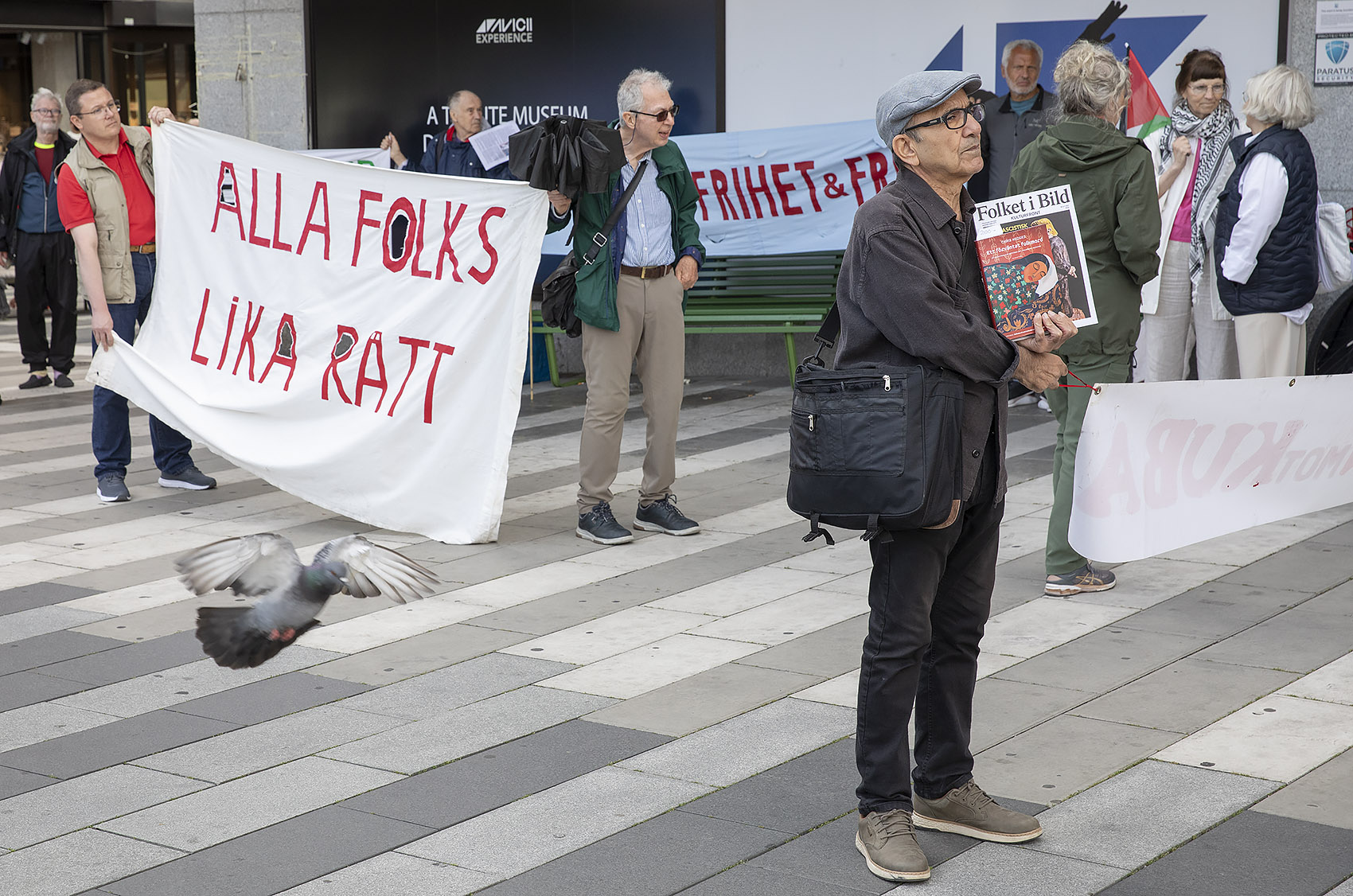 Ännu en kraftfull demonstration i Stockholm till stöd för palestinierna! Och LO:s ordförande Johan Lindholm höll tal vid det avslutande mötet på Gustav Adolfs torg! Nu får man bara hoppas att han slipper den skit som miljöpartiets Daniel Helldén råkade ut för efter att ha hållit tal på Odenplan förra lördagen. Beundrandsvärt av honom! Liksom hans riksdagskollega som talade vid den förrförra demonstrationen. Nu väntar vi bara på att socialdemokraternas och vänsterpartiets ledare också vågar stå upp vid någon av dessa manifestationer! Sedan får de ta risken att reptilorganisationen Judiska centralrådet kör en guilt by association-anklagelse därför att någon tidigare talare på Odenplan sagt något som de inte gillar. Dessa kräk som anklagar andra men själva slipper frågan hur de ställer sig till det israeliska folkmordet. Vi var många tusen ikväll med en röd ton i klädseln och drog en röd linje: Nu får det vara nog!