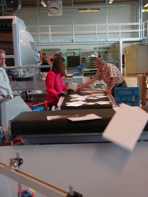 Översiktsbild. I förgrunden Irene Lannerfors och Janne Friman vid klumpbandet, därefter trumman, fladderbordet, Snurre Sprätt och längst bort GSM:en.,