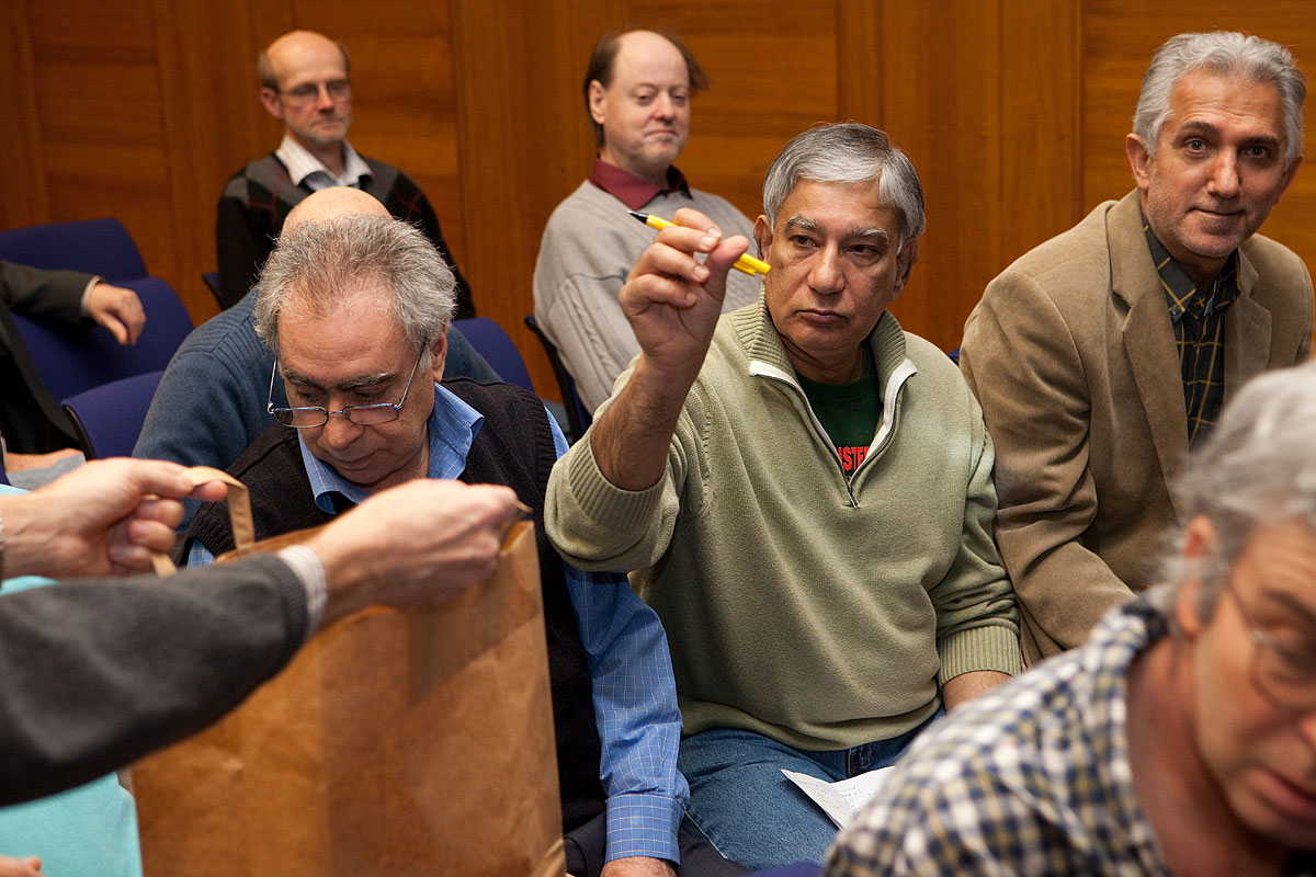 I valet till sektionsordförande för 2011-12 fanns två kandidater, Mohibul Ezdani Khan och Pia Zetterberg. När valet genomförts meddelades från podiet att det avgivits ca 130 röster – trots att det bara fanns ca 109 röstberättigade i lokalen. Jag skriver "ca" därför att det inte redogjordes ordentligt för valresultatet. Mötet beslöt på grundval av denna något röriga information att valet måste göras om. Så skedde också och då blev resultatet att av de 107 avgivna giltiga rösterna hade Mohibul fått 71 röster och Pia 36; Mohibul Ezdani Khan blev alltså omvald som sektionsordförande.