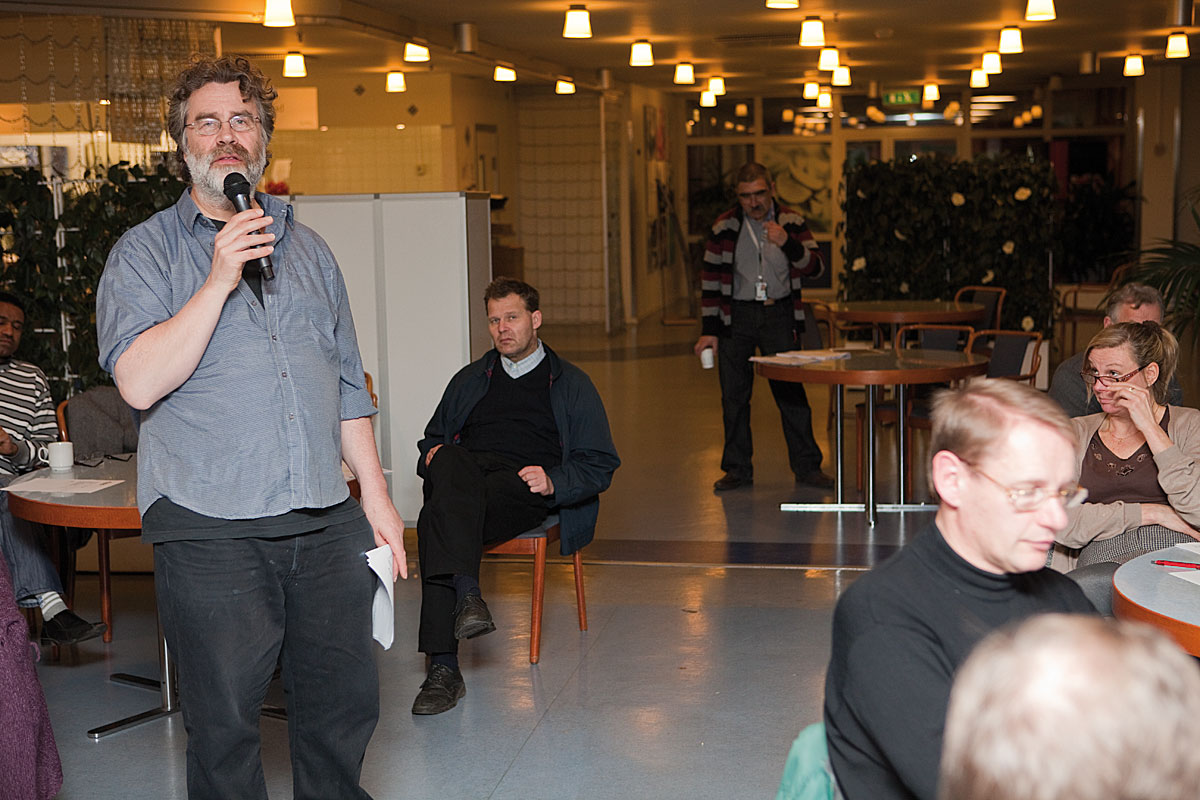 Riksdagsledamoten Jens Holm (v) var inbjuden talare.