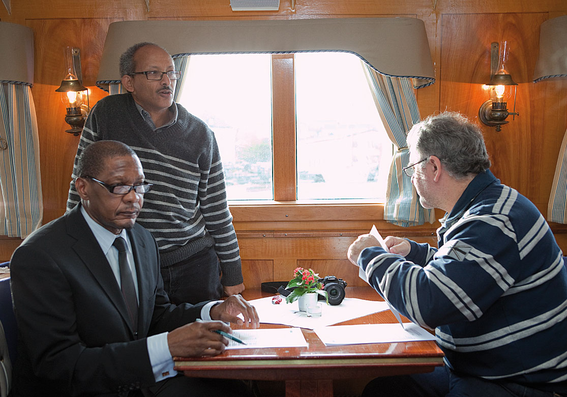 Amin Dara med Rolf Bergsén och Abdi Dahir Abdulaziz i bakgrunden