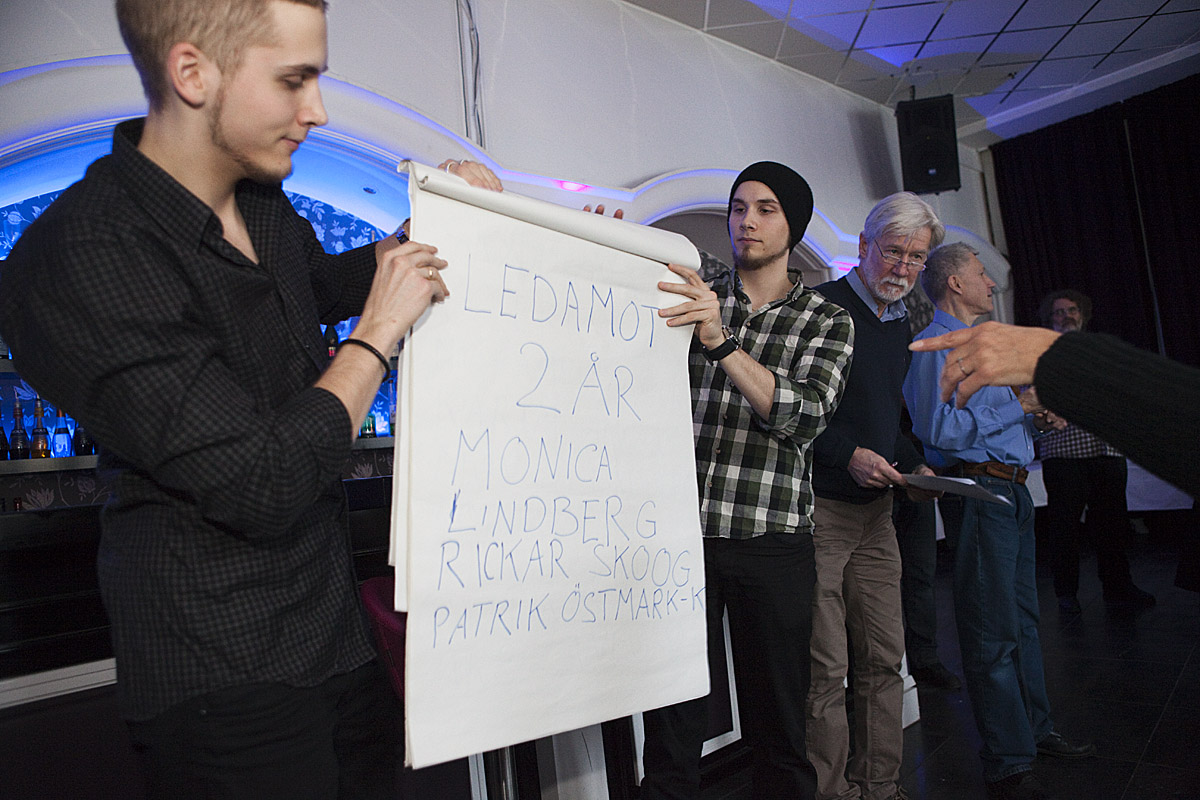 Styrelsen föreslog mötet att ersättarposten skulle avskaffas och styrelsen därmed bestå enbart av de sju ordinarie ledamöterna. Årsmötet instämde i detta. Mötet fastställde därefter med acklamationsval att Leif Skog och Anita Segander ska vara ordinarie ledamöter på två år och Eva Brattström på ett år.