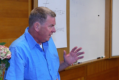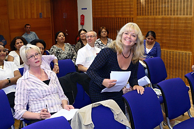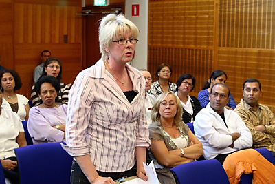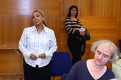 Enhet 1-2:s möte: Maria Genou. I förgrunden Peter Lindeteg.