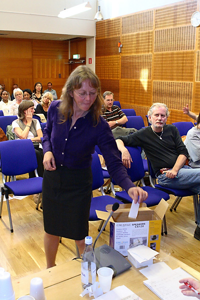 Enhet 1-2 samlades i Sandlersalen, där de ca 65 närvarande medlemmarna valde Mohibul Ezdanikhan till ordförande för den nya sektionen och Ulf Ericsson till kassör. Leif Skog, Anita Segander, Agneta Atland, Eva Brattström och Masood Punjabi valdes till ordinarie styrelseledamöter. Ordförandens och de två förstnämnda styrelseledamöternas mandatperiod bestämdes till två år och fem månader (till februari 2009). Kassören och de tre övriga ledamöternas mandatperiod är ett år och fem månader (februari 2008).