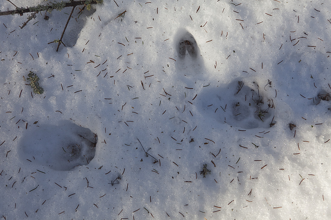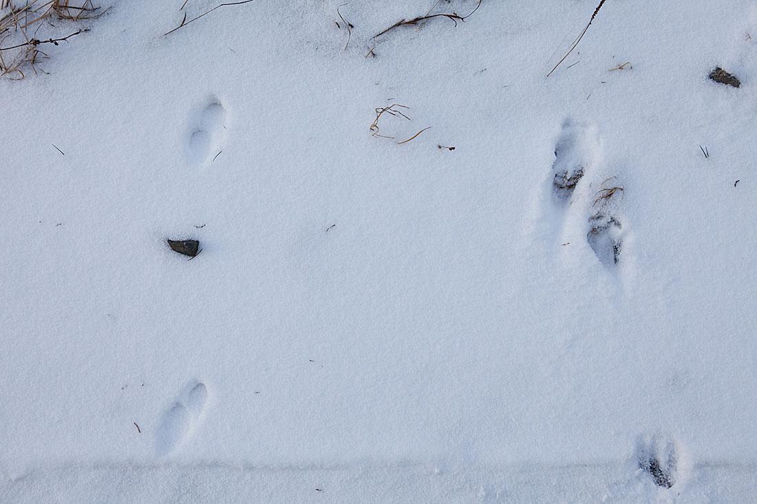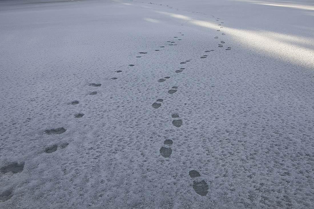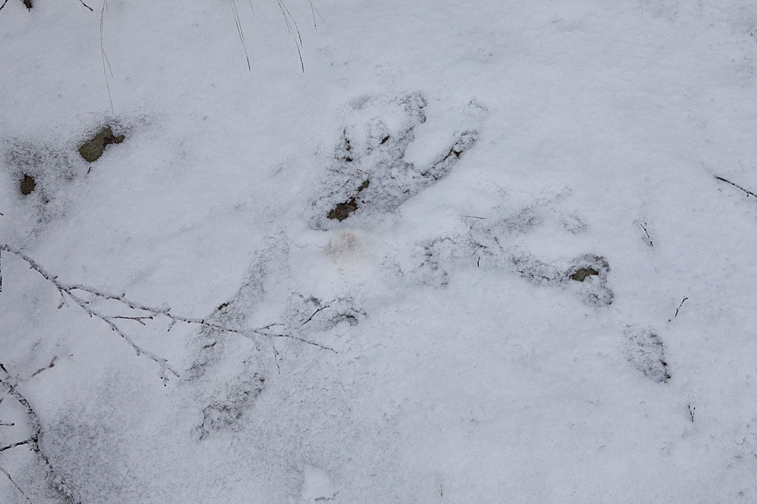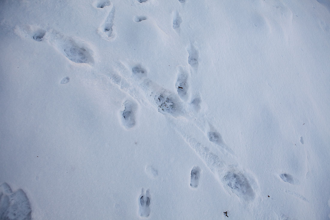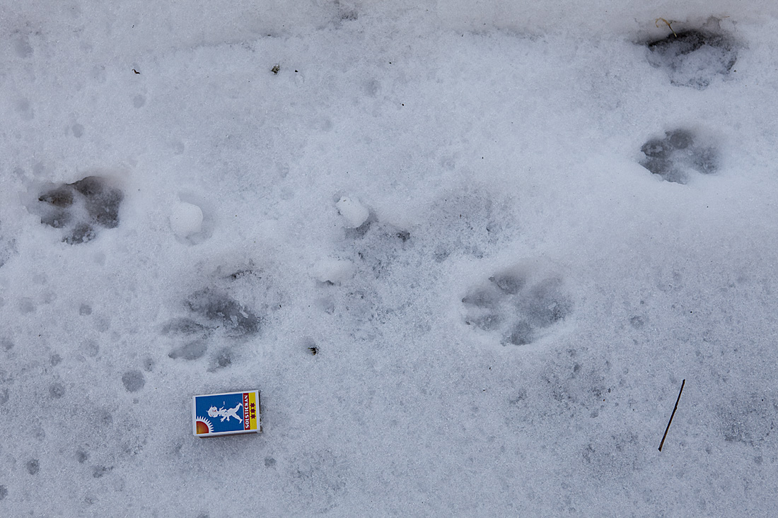 ... och en gång till. Hannen hade pinkat på varje sten som stack upp ur isen längs sjökanten.