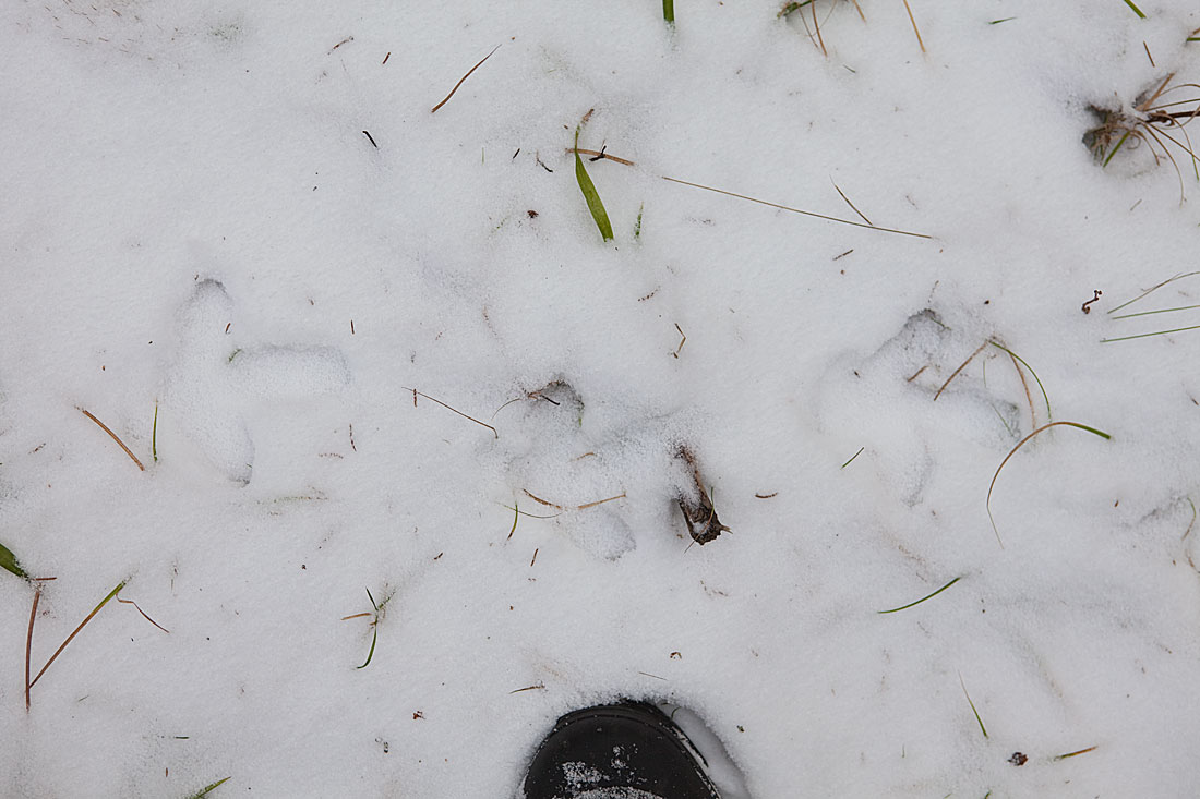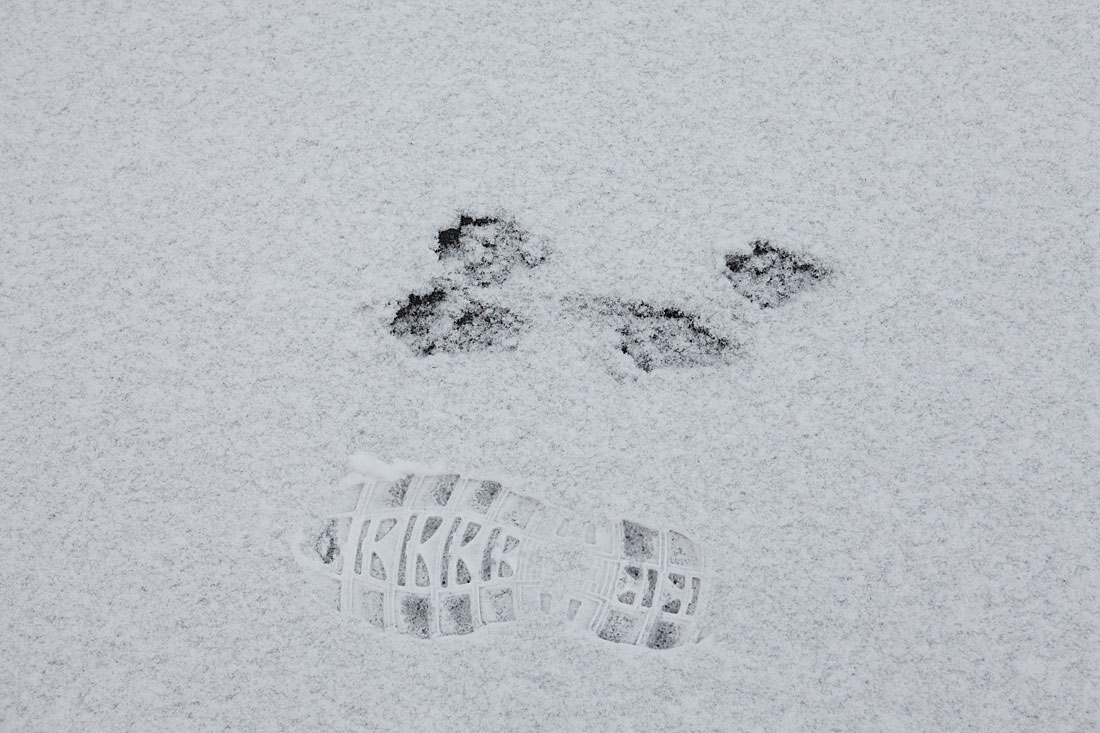 ... där rådjuren gått natten efter i spåren. Det blir samtidigt en storleksjämförelse ...
