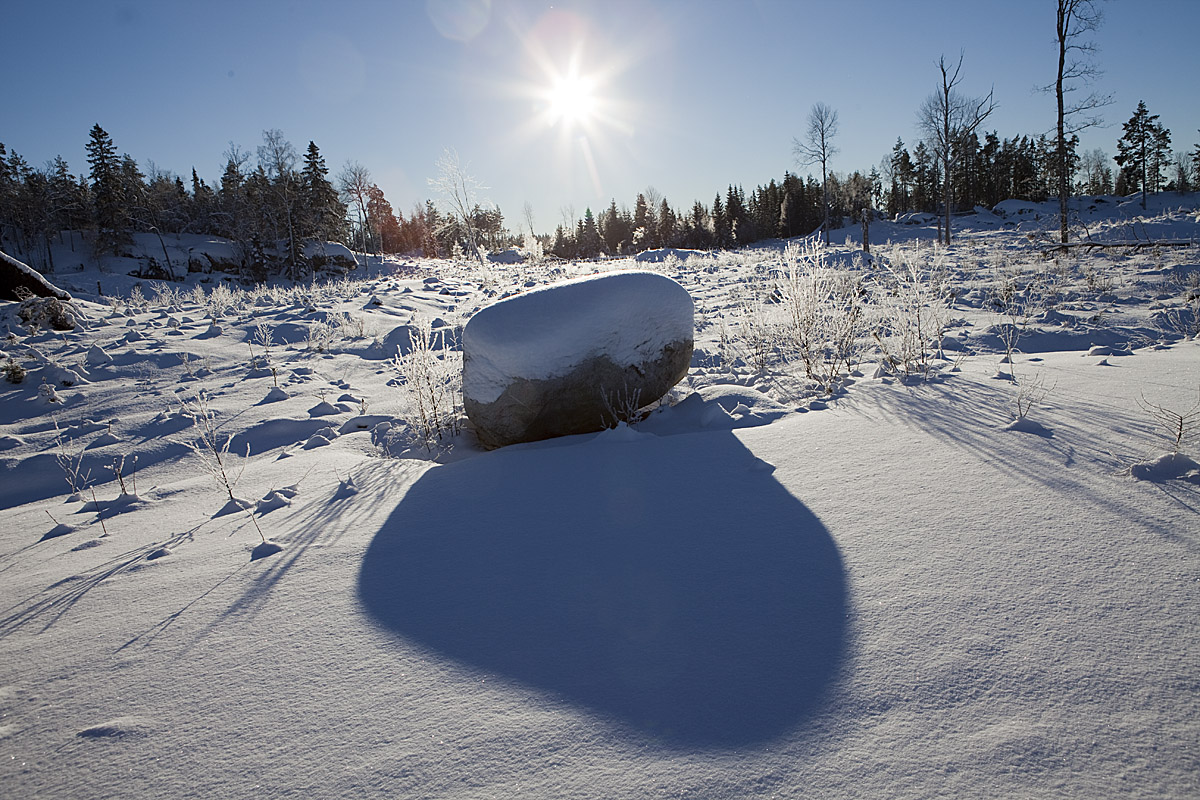 Även kalhyggena har sin skönhet en sådan här dag, här en sten ...