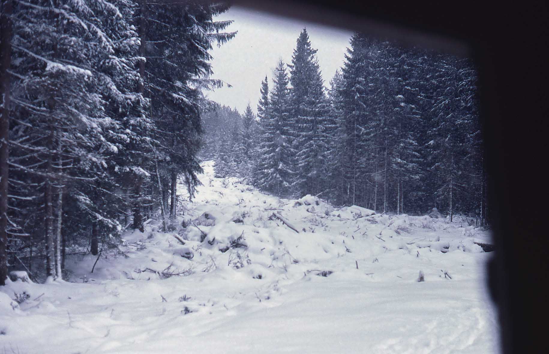 Den här kvällen var vi ute för att lyssna efter ugglor, förutom kattuggla kunde man på den tiden nästan varje år höra pärluggla i de här skogarna. De hårdhänta förändringarna i skogsbruket men också mårdens expansion efter rävskabben i mitten av 80-talet kan vara en förklaring till att man aldrig hör den numera. Skogsbilvägarna var obommade så vi körde ända ner till gården och vände och fick en pratstund med det gamla paret som var de sista mjölkbönderna på stället.