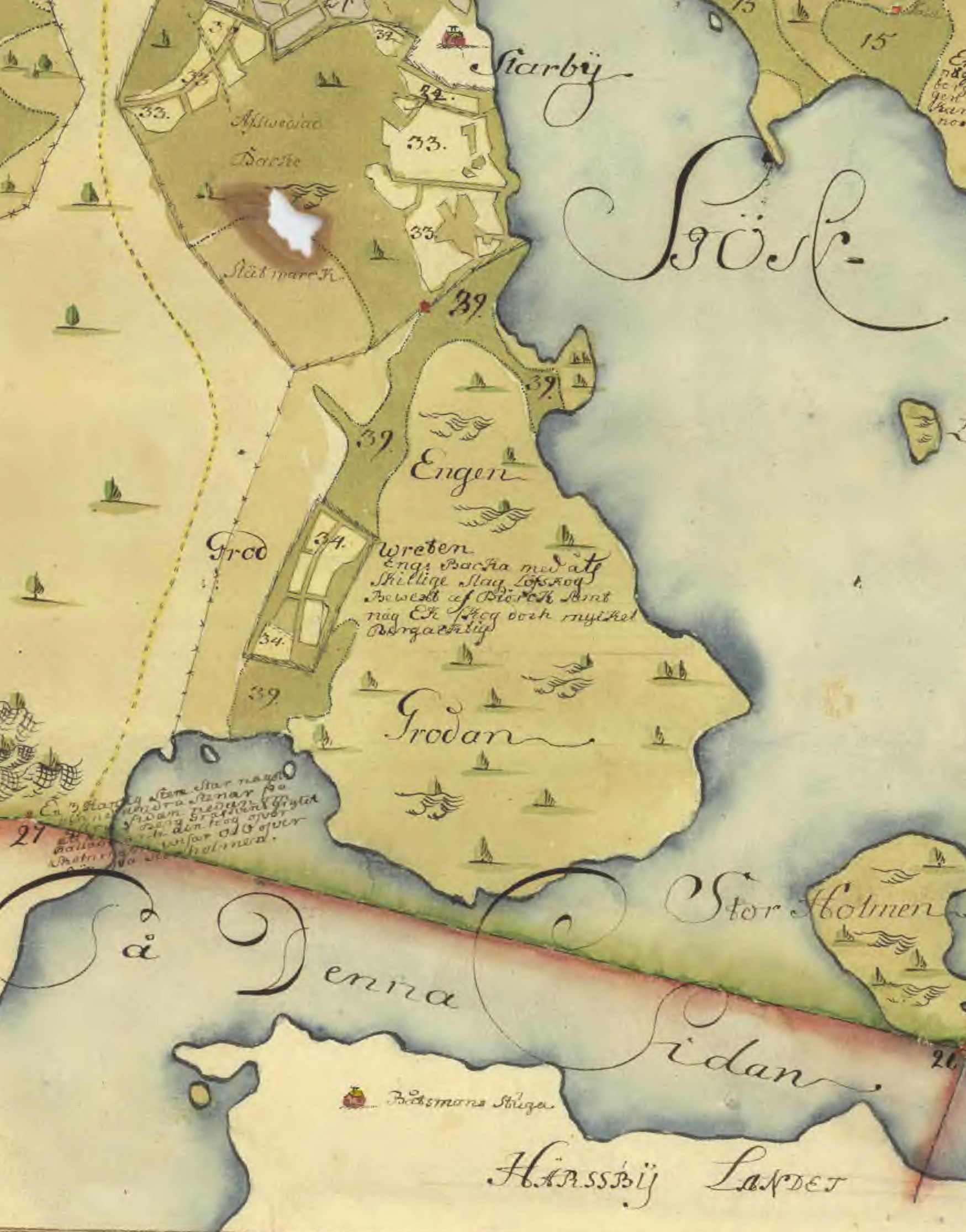 1795 års karta över Tärnholm - Bromseby. (Lantmäteriet Historiska kartor>Lantmäteristyrelsens arkiv>Stockholms län>Össebygarns s:n> Bromseby>Össeby-garns socken Bromseby nr 1)