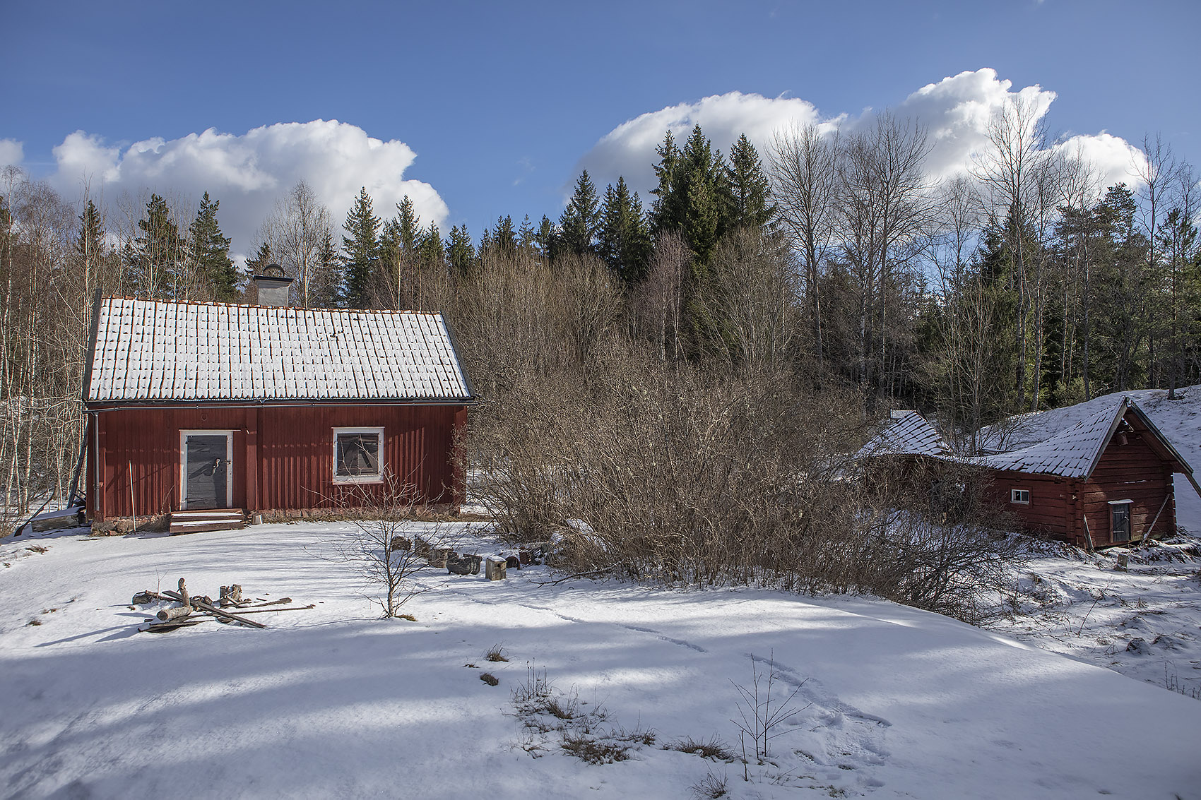En annan gång. Det måste ha varit i mitten av 80-talet, vi åker skidor på Tärnan när vi hör hur det dundrar i isen – och så kommer Bengts nordsvenskar travande (eller var det galopp, jag kan inte det där med hästar?) från Tärnholm. De hälsar på oss och sedan vänder de tillbaka. De år som det var gammeldags vintrar körde Bengt med häst och släde på isarna från hemmagården i Rumsättra till Tärnholm, en sista rest från den tid då kolfororna gick längs samma rutt på sjöarna ner till bruket i Wira. Det finns många kolbottnar i traktens skogar, och åtminstone en ruin efter en kolarkoja. Eller fanns, ska man nog säga. Det moderna skogsbruket har förstört de flesta. Orienterarna ritade in dem på sina kartor, men Riksantikvarieämbetet fick aldrig in dem i den ekonomiska kartan och därför är de ett fritt byte. Anshelm Schultzbergs målning "Morgon vid kolbotten" ger en fin skildring av hur det kan ha sett ut vid Kolarfallet i Exerman-Hersbyreservatet på den slitsamma tid som det begav sig.