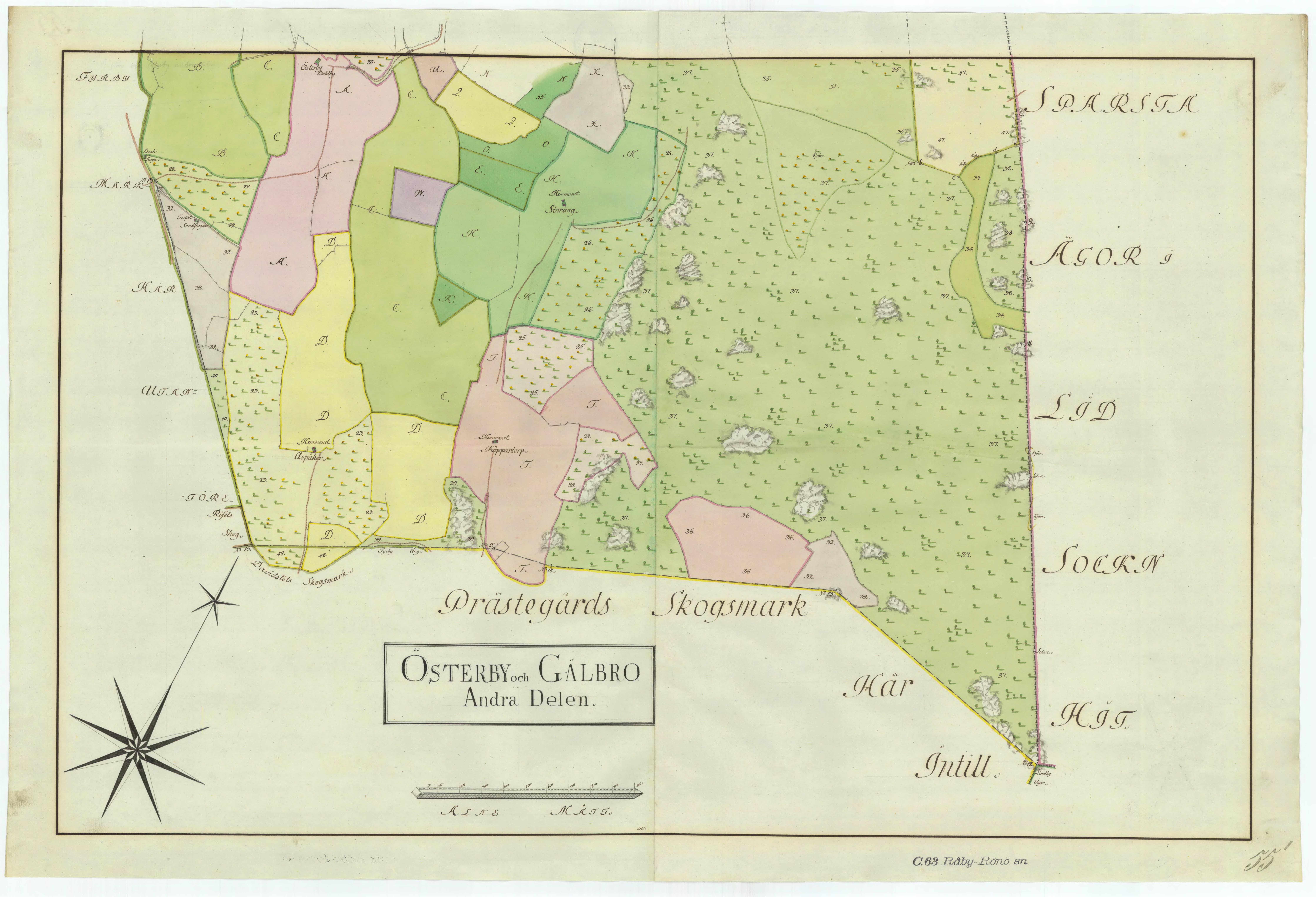 Den 12 augusti år 1800 hade lantmätaren Eric Åhrberg kallat samtliga markägare till en syn. Syftet med storskiftet var i det här fallet att “förrätta delning på skog och utmark emellan Bohlbyarne Österby och Gälbro ... samt de på dess ägor belägne afgärdade hemman”. Resultatet av delningen framgår av den vackra kartan. Det speciella med det här skiftet är att båda “bohlbyarna” och samtliga hemman förutom Bro och Utåker ägdes av Christineholm. Än så länge och en tid framåt brukades Christineholms hemman som arrendegårdar men så småningom lades markerna samman och brukades direkt under godset. Flera gårdar såldes senare av, till exempel Koppartorp, Aspåker, Kurtorp och Långudden. Gälbro övergick under 1800-talet till att bli en statbyggnad för att till slut rivas bort i sekelskiftet 18/1900.